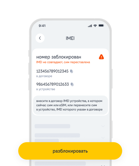 убедись, что IMEI устройства совпадает с IMEI в договоре
